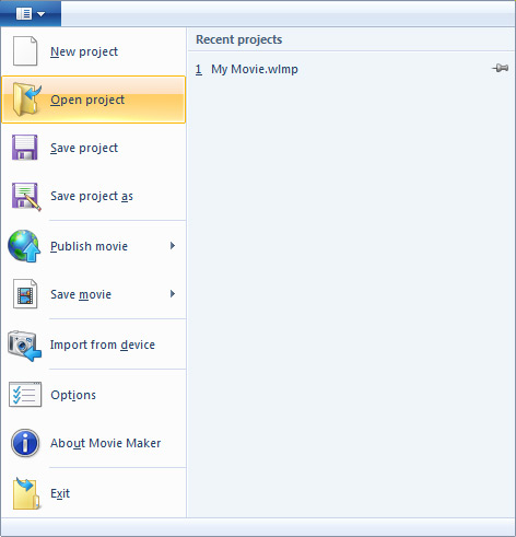Launch Windows Live Movie Maker, and then open your .wlmp file by clicking "File" -> "Open Project", or using the hotkey Ctrl + O.
