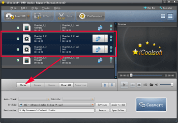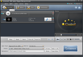 iCoolsoft DVD Audio Ripper allows you to customize audio encoding settings to adjust the output sound quality. It also provides powerful audio editing functions for you to select any audio track and specify a segment to rip, merge several clips and so on.