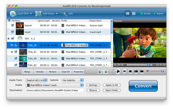 This Mac DVD Converter can list all the DVD movie titles and chapters for you to choose any one to convert. You are also allowed to choose the subtitle and audio track. You can select any movie chapter, preview it and quickly save your favorite scene as image files.