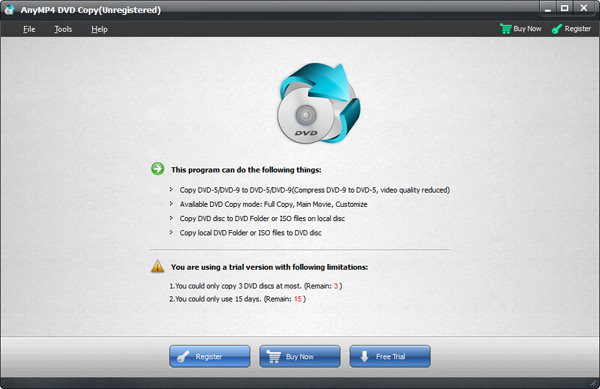 This best DVD Copy software enables you to load DVD folder or ISO image files and then burn to blank DVD disc. Thus you can backup your favorite DVD movies to computer and burn them to DVD disc and share with friends at any time in the future.