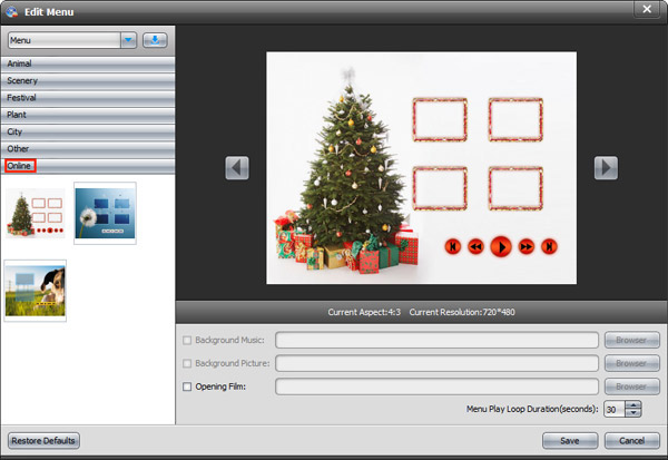This best DVD Maker enables you to customize the DVD menu at will, thus you can create more personalized DVD movie. In spite of the preset DVD menu templates, it offers multiple online DVD menu templates for you to download and use.