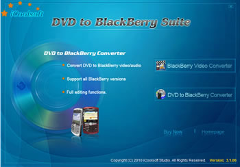 iCoolsoft DVD to BlackBerry Suite, containing BlackBerry Video Converter and DVD to BlackBerry Converter, is definitely the best choice for you to convert any audio/video/DVD to the formats compatible with your BlackBerry. You can also use this DVD to BlackBerry Suite to extract audio tracks from videos/DVDs and then convert to BlackBerry formats.