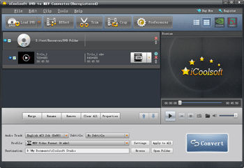 You are allowed to adjust video/audio encoding settings of MKV videos, and customize the image and sound quality of the output HD videos and general videos. This iCoolsoft DVD to MKV Converter allows you to select any audio track and subtitle to convert, trim, crop, merge videos, adjust effect and add watermark to individualize output videos.