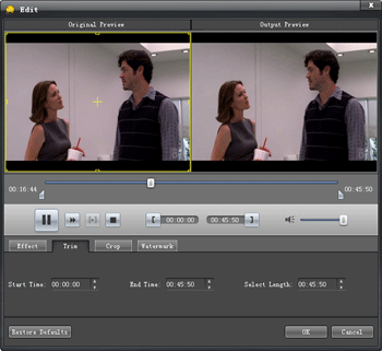 Powerful video editing functions are provided, such as movie trimming, video cropping, clips merging, effect adjustment, watermark creating, etc. You can quickly capture picture when preview the source movies to get your favorite movie scene. - More practical features