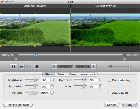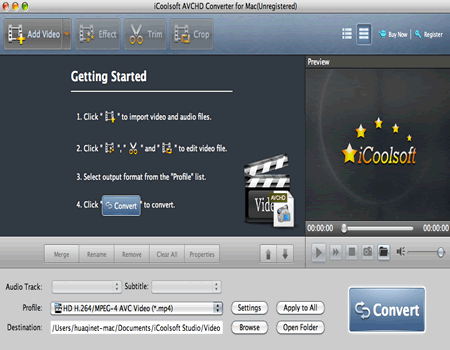 iCoolsoft AVCHD Converter for Mac is also well-know with its easy-to-operate editing function. It enables you to trim your video to preserve the very part of your video, crop video to wanted length, merge two different videos and more.