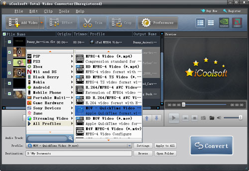 Step 2: Open "Profile" drop-down list and choose proper MOV or MP4 as the output format.