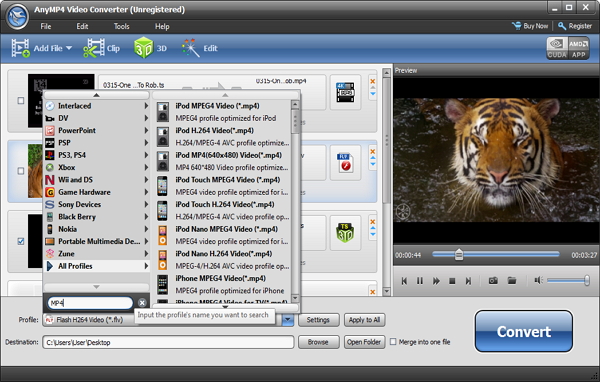 Open "Profile" drop-down list and choose Sony XPERIA MP4 format as the output format. Click "Browse" button to set output path.