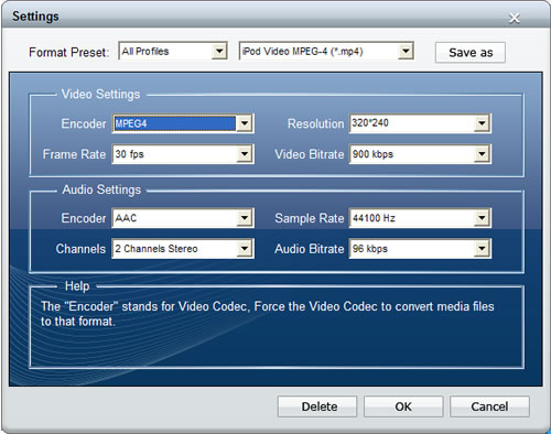 Tip 1: Click button "Settings" to set the output parameters for audio/video according to the needs of your players.