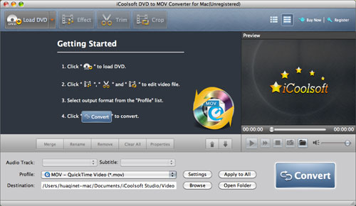 QuickTime File Format (QTFF) is a computer file format used natively by the QuickTime framework. Its extension name is .mov and .qt. MOV format is widely accepted by Apple digital devices. To convert DVD movies to MOV format so as to enjoy the DVD movies through MOV support devices, we have to take advantage of professional DVD to MOV converter. iCoolsoft DVD Ripper for Mac is just what we need. It is professional enough to decipher DVD discs automatically and support various output formats. It also provides editing functions, snapshot function and preview function. You could also set the output parameters according to your needs freely.