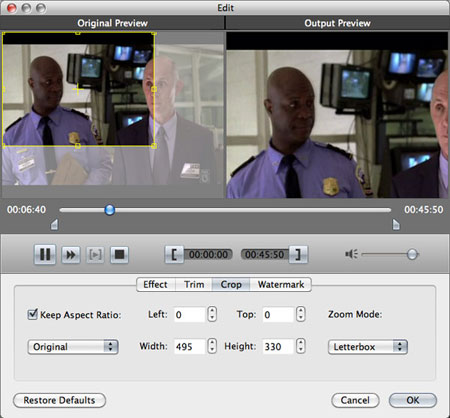 If you would like to edit the DVD movie before ripping, you can select the title/chapter and click "Effect", "Trim", or "Crop" button. In the popped out "Edit" window, you can adjust the Brightness, Contrast, and Saturation; trim any time length of clips; crop displaying area; select Aspect Ratio; and add text/picture watermark.