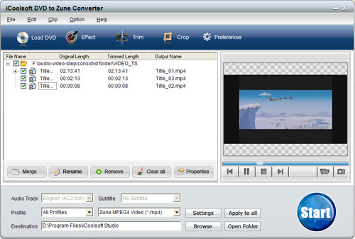 Follow this guide and you will find it very easy to convert DVD movies to the audio/video formats compatible with Zune players.