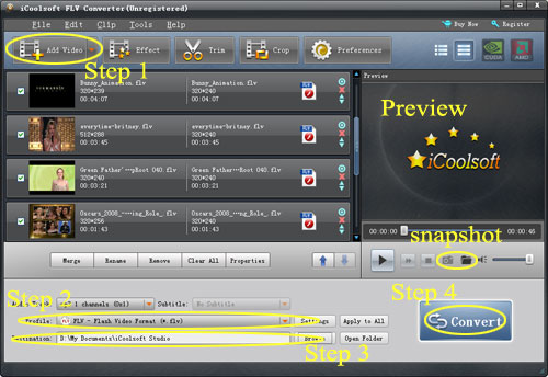 Step 1: Click "Add Video" button to add the FLV videos you would like to convert.