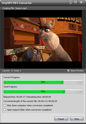 Supporting all popular videos as the input formats, iCoolsoft MP4 Converter can convert these videos to MPEG-4, H.264, HD MP4, HD H.264 and specific MP4 videos compatible with various portable players.