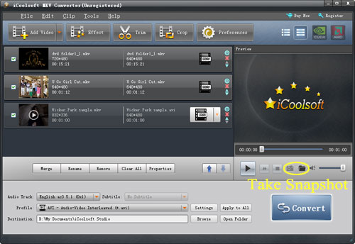 Tip: You can preview the MKV file in the preview pane and take snapshot of the scenes you like the most.