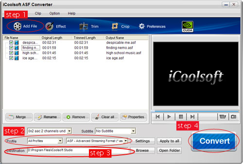 Free download and install iCoolsoft ASF Converter to your PC. Launch it.