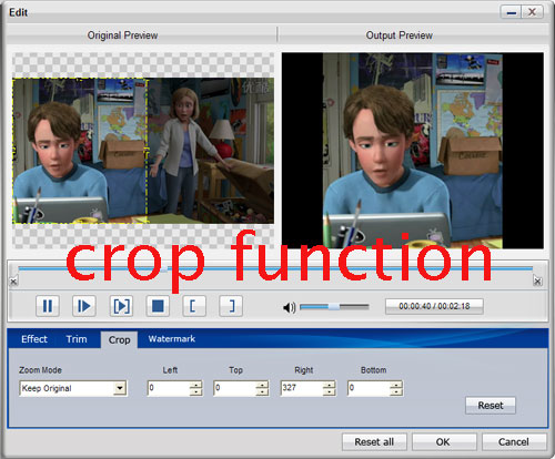 Step 3: Select the MKV video and use "Effect, Trim, Crop" buttons on the tool bar to edit it as you like. That will help you to adjust video effect, get rid of the parts you do not want of the video, remove black borders around the original video, and add text or picture watermark.