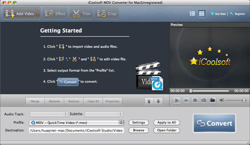 Free download and install iCoolsoft MOV Converter for Mac. Launch the software.