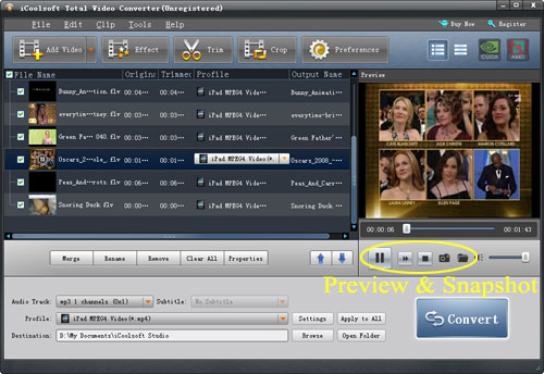 You can preview the MOV video in the preview pane and take snapshot of the scenes you like.