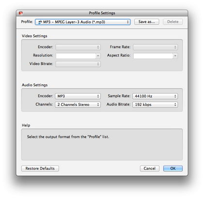 Tip: Choose output format as from the "Profile" combo-box, and set the export folder by clicking the "Browse" button.