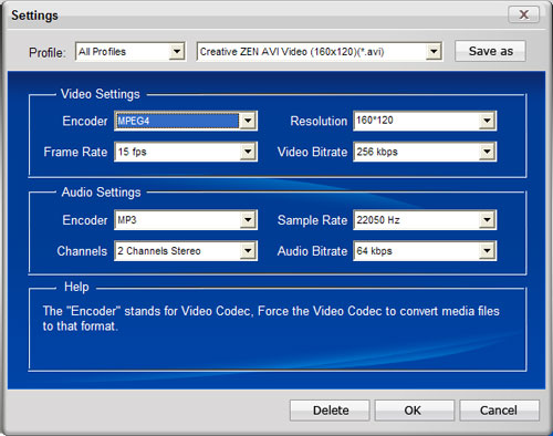 Step 4: Set the output parameters by clicking button "Settings". You are allowed to set the Encoder, Resolution, Frame Rate, Video Bitrate, Encoder, Sample Rate, Channels, and Audio Bitrate.
