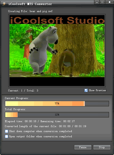 In order to play back MTS files through iPad, we have to, first of all, convert MTS files to iPad compatible formats, such as iPad H.264 and iPad MPEG-4 format. There are many kinds of MTS to iPad converters in the market and we have to make sure to find a professional as well as easy-to-use one. iCoolsoft MTS Converter is just a professional and easy-to-use software which is worth your trial. It provides us with various outputting formats besides H.264 and MPEG-4 formats. It also allows us to edit the original MTS files by using its trimming, cropping, adjusting effect, merging, and adding watermark functions. What's more, it supports batch conversion which could help you save much time and energy. That iCoolsoft MTS Converter provides free trial version. So why don't you free download one and have a try?