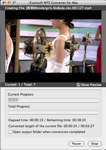 6: Click "Convert" to start to convert MTS to iMovie Mac. After click, the preview box will flash up to show the detail status. Wait for a while; you will get your own special video.