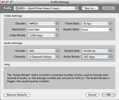 5: Alter the setting. To get perfect output quality, click the setting button to change related parameters frame rate, video bitrates, audio bitrates as below. You can also save below as a new profile.