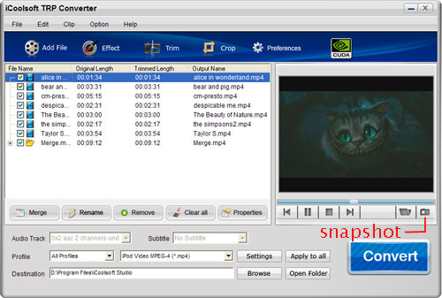You can preview the added TRP video in the preview pane and take snapshot of the scenes you like.