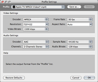 Fourthly, select Apple TV format from the drop-down list of "Profile".