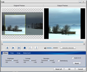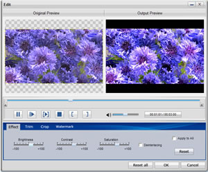 to adjust Brightness, Contrast and Saturation. You can also check "Deinterlacing" checkbox to avoid mosaic and improve the quality of the video.