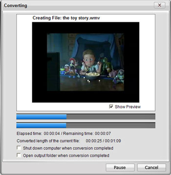 button to convert videos. It will show you the progress of the converting. You can also check "Shut down computer when conversion completed" or "Open output folder when conversion completed" there.