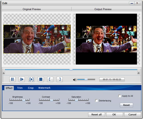 to adjust Brightness, Contrast and Saturation. You can also check "Deinterlacing" checkbox to avoid mosaic and improve the quality of the video.