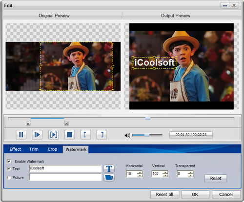 If you only want to convert a segment of the entire video or do not want to convert some certain segment of the video, you can use the trim function of iCoolsoft 3GP Converter. Click button