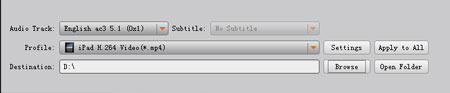 Step 5: Select audio track and subtitle if you need. Select the output format from the drop-down list of "Profile". Set the "Destination".