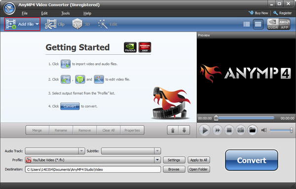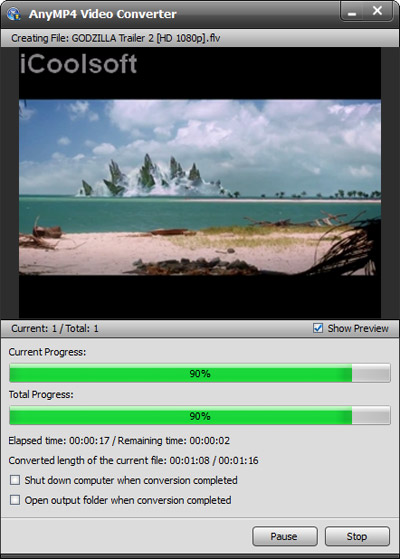 Tip:You can preview the added file in the preview pane and take snapshot of the scenes you like the most. Click button "Snapshot" and the picture will be saved as default format in default folder. Click button "Folder" to open the snapshot folder and click "Preferences" button to change output format and folder.