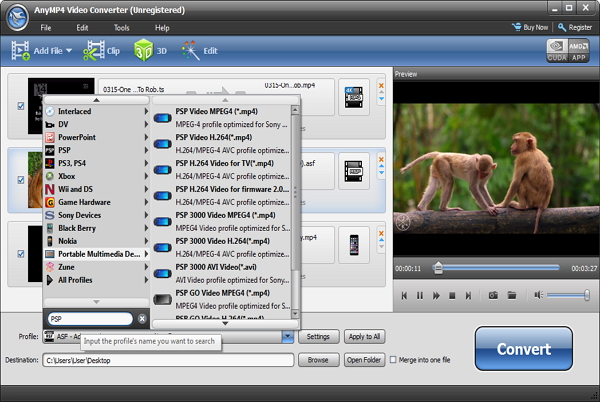 Open "Profile" drop-down list and choose PS3 format as output format. Click "Browse" button to set output path.