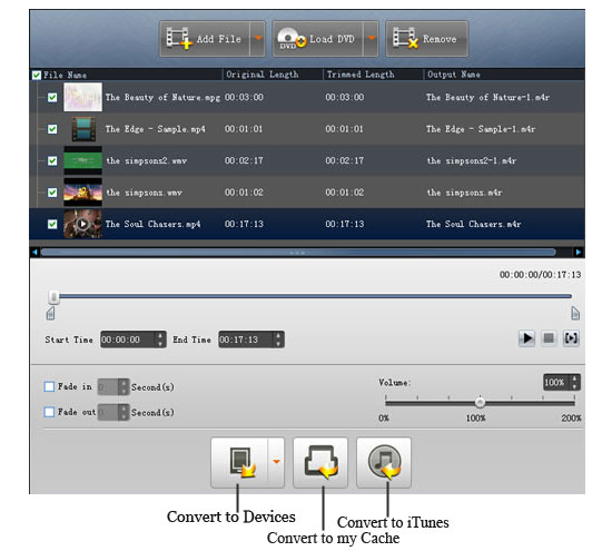 My Cache can save the converted videos and audios, and it allows you transfer them to your devices at any time you want. - Make iPhone Ringtones