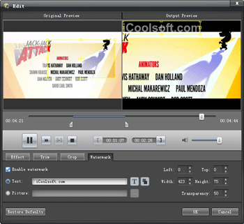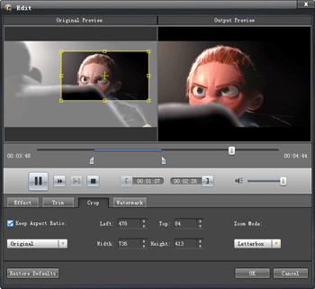 Powerful video editing functions are also provided by this iPad Video Converter for you to edit the source videos before output iPad videos. You can cut, join, crop videos, adjust effect, and add watermark to create personalized iPad video.