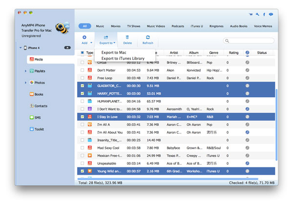 What's more, this software can sync iPhone files like Music, Movies, TV Shows, Music Videos, Podcasts, iTunes U, Ringtones, Audio Books, Voice Memos, Playlists, ePub and PDF to iTunes selectively.