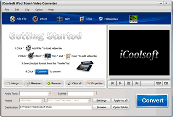 The interface of this iPod Touch Video Converter is very user-friendly. Everyone can handle it even the first time he gets in touch with this field. Besides, it supports batch conversion and the converting speed of it is really fast so you can save a lot of time using it.