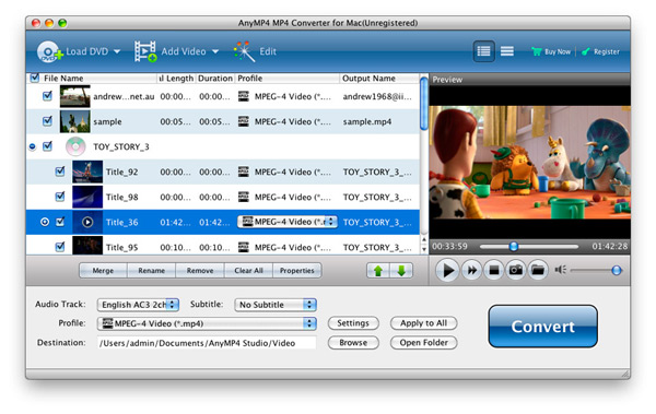 This iCoolsoft MP4 Converter for Mac enables users convert all videos to MPEG-4 or H.264 videos, supporting almost all general videos and HD videos, such as MPEG, MOV, M4V, TS, M2TS, MXF, WMV, AVI, 3GP, FLV, H.264/MPEG-4 AVC, HD AVI, HD MOV, and so on. With this MP4 Converter Mac, you are able to convert DVD to MP4 and even other popular video formats like MOV, AVI, MKV and so forth. Besides, you can extract audios from DVD/video and convert them to your need audio formats like MP3, AC3, M4A, MP2, etc.