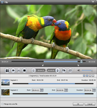 Moreover, there are many useful functions of this software which can help you to customize video/audio files as you like. The clip and merge functions of this software enable you to customize the content of video or audio. You can trim any time length of clips to delete them from the original files and merge several clips together into one file. Crop is a function which can help you to get rid of the black borders around the original movies. It also can be used to zoom in some part of the image. Also, you are free to select Aspect Ratio, such as 16:9, 4:3, full screen, etc.
