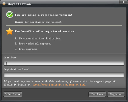 Free trial users can contact iCoolsoft technical support team for further assistance.